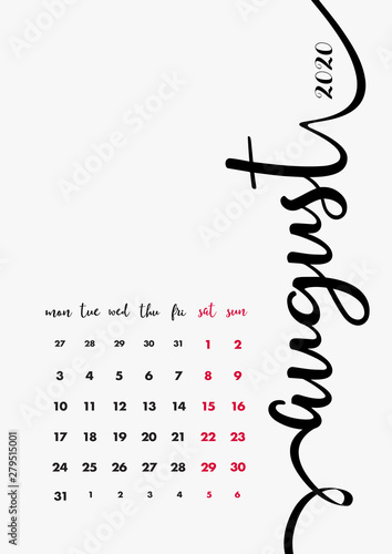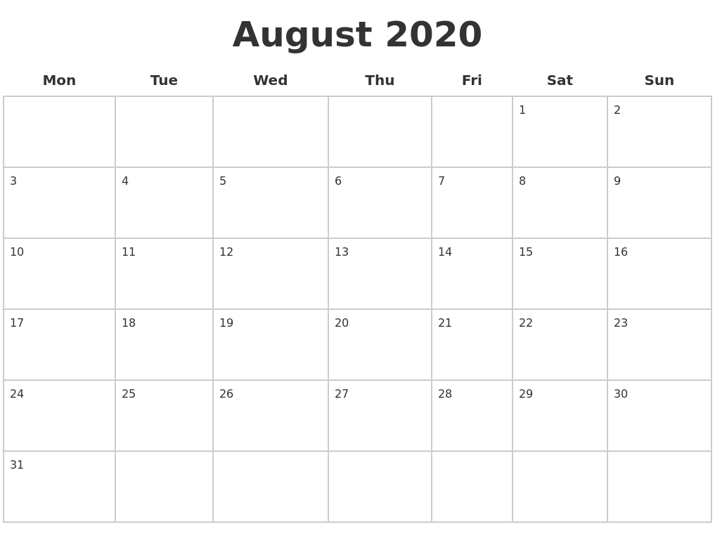Blank 2020 August Calendar Printable Landscape Layout Free Printable 2020 Calendar With Holidays