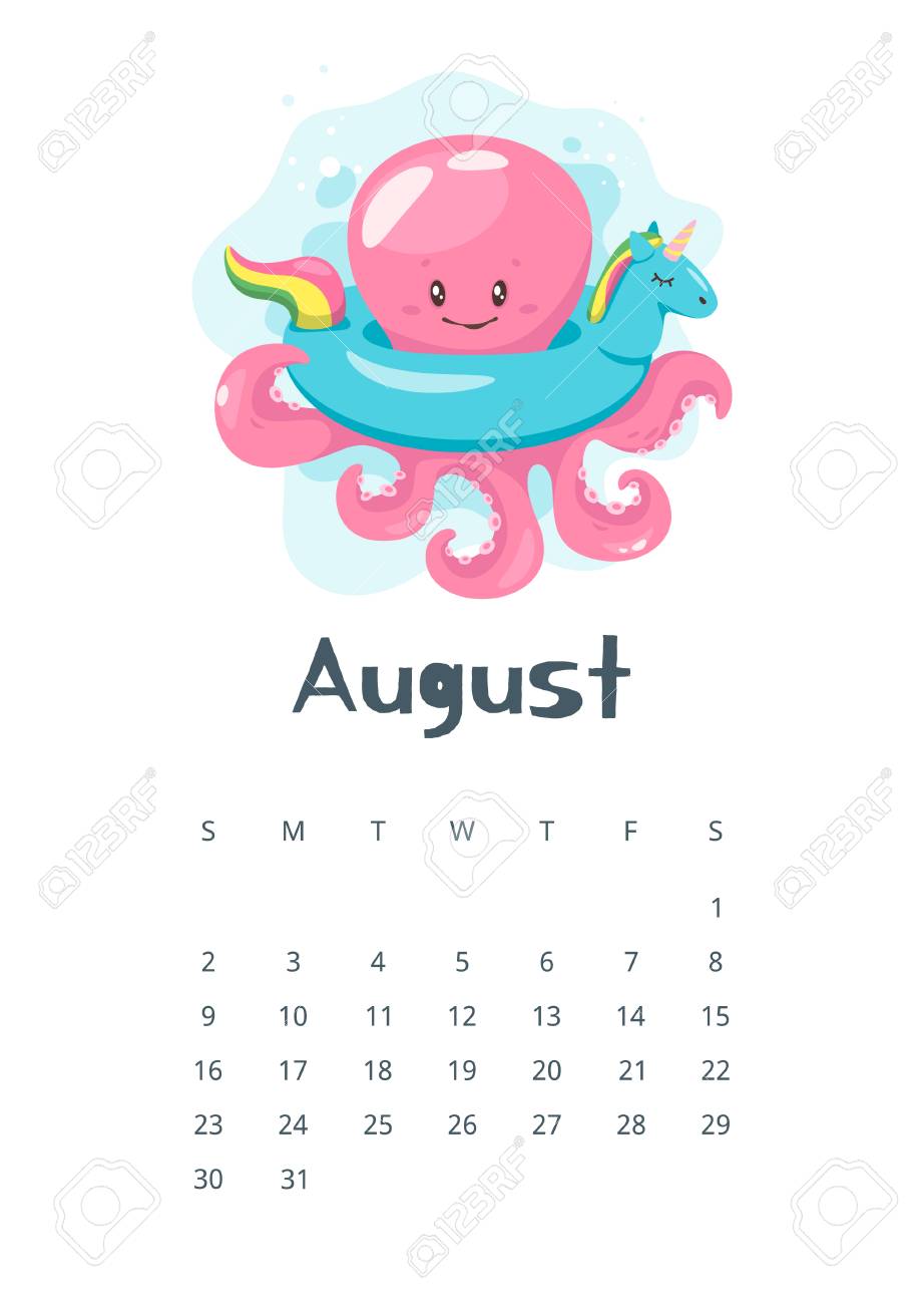 2020 August Printable Coloring Calendar Page Swimming With Manatees Florida