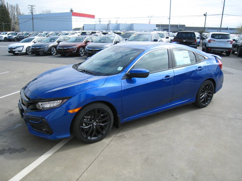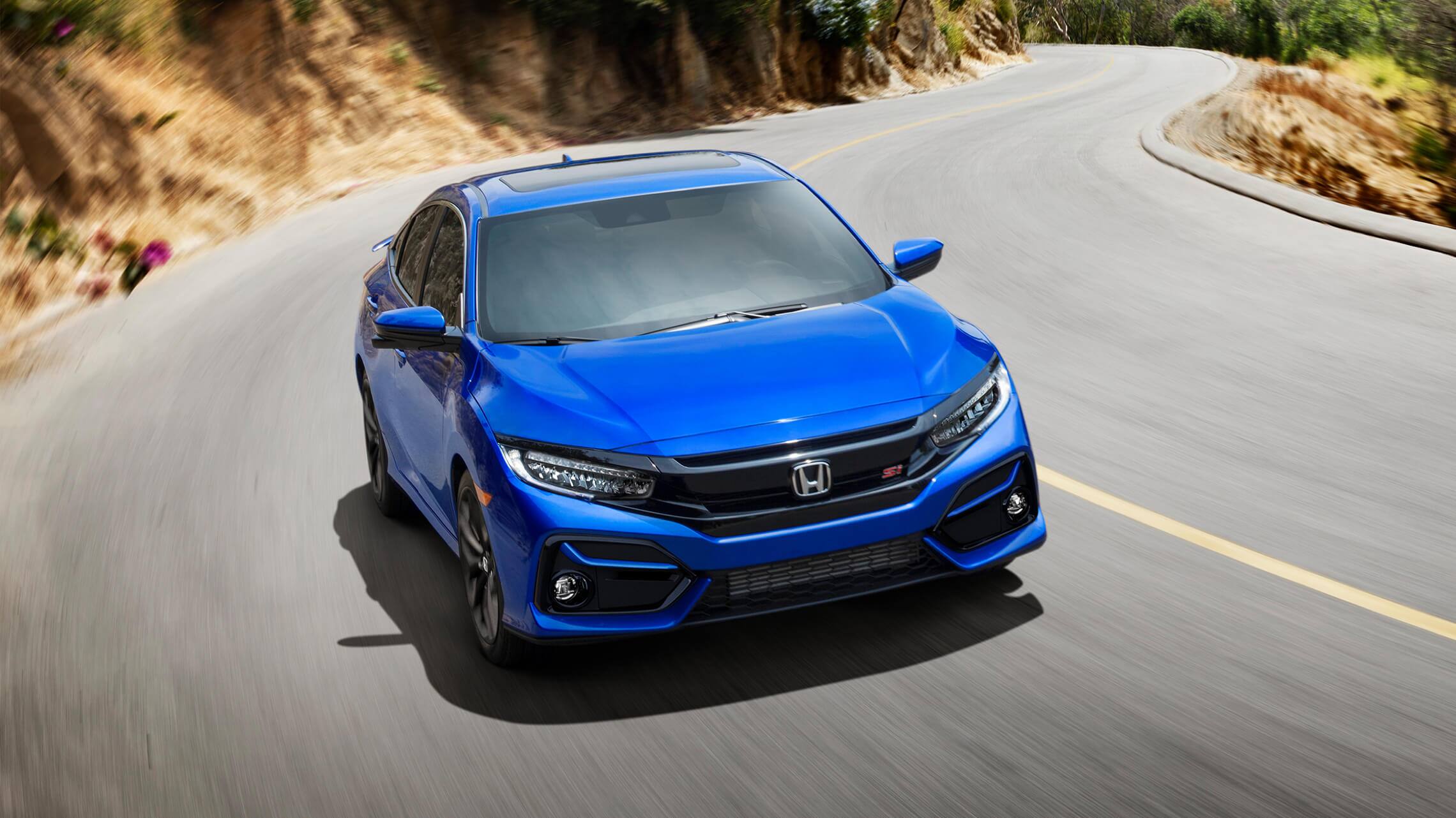 2019 Honda Civic Si Sedan Exterior Shot With Blue Paint Color