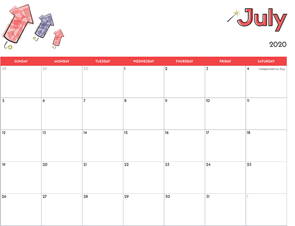 July 2020 Calendar Free Printable Monthly Calendars