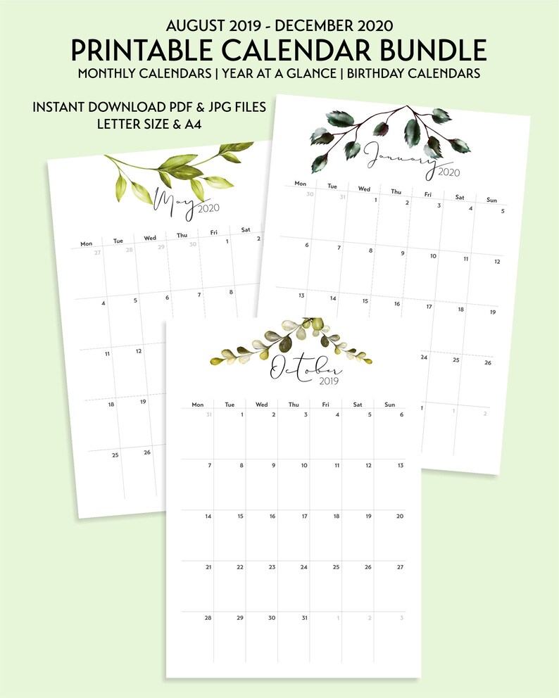 2020 Free Printable Calendar Floral Paper Trail Design