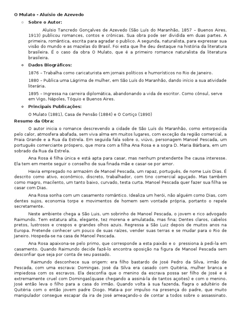 O Mulato Resumo Ficcao E Literatura pt.scribd.com