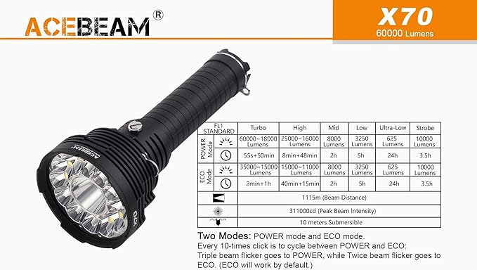 Amazon Com Acebeam X70 Brightest Flashlight 60 000 Lumens Cree
