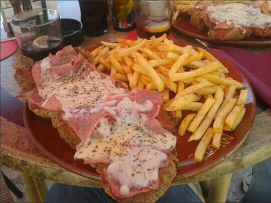 Milanesa napolitana con fritas hd. Esta receta la hice cuando vinieron unos amigos que no veia hace tiempo. Algo rapido para el momento. Milanesas a la napolitana con papas fritas con crema de verdeo.