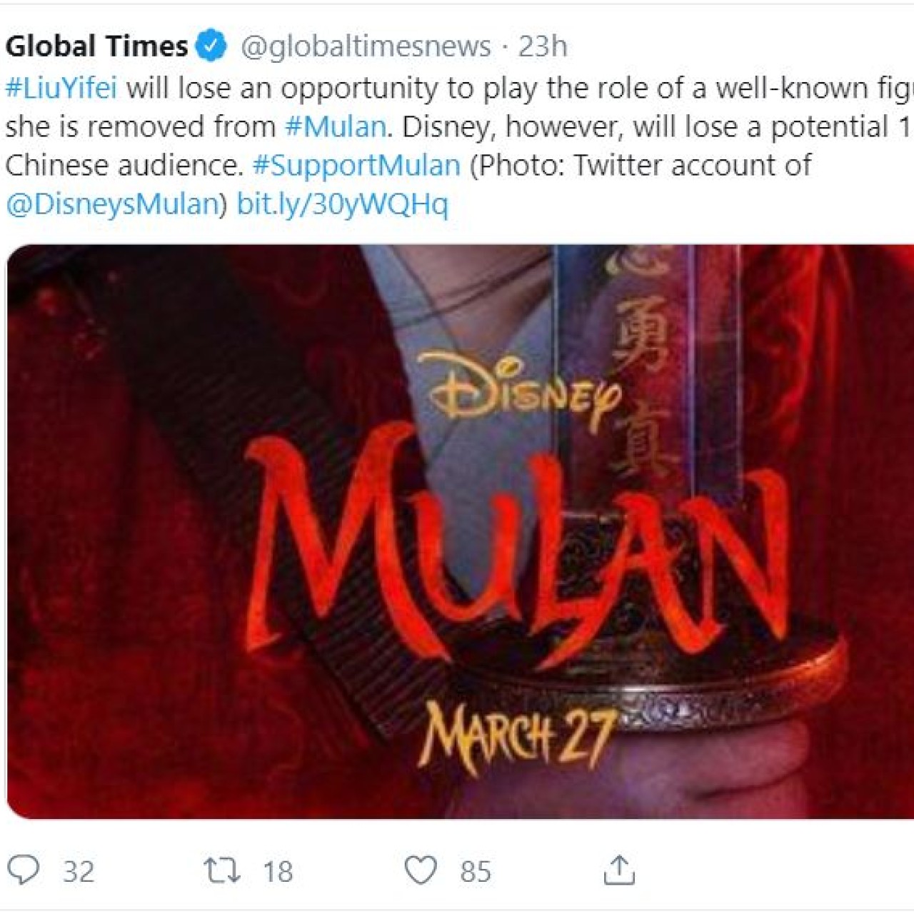 Fans Call For Boycott Of Mulan After Lead Actress Supports Hong