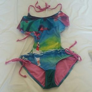 Disney Princess Mulan Monokini Ruffle Top One Piece Swim Suit Hot