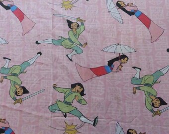 Vintage Disney Mulan Full Double Pink Flat Bed Sheet Cutter Fabric Disney Vintage Disney Vintage Bed Vintage Character