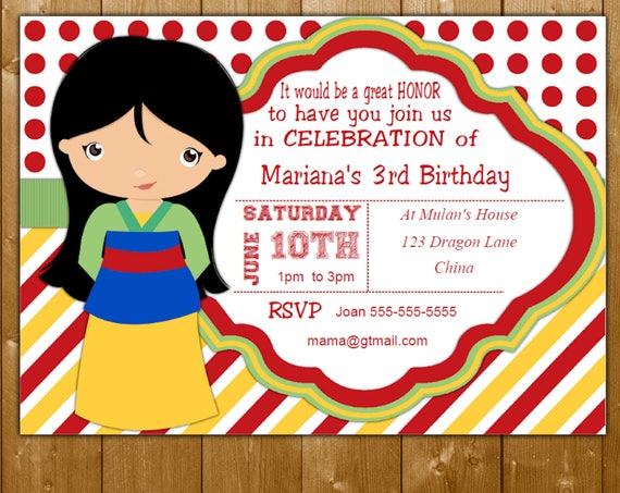 Fa Mulan Wedding Invitation Party Birthday Disney Princess Png