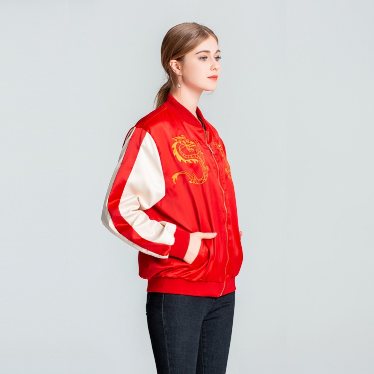 New Fashion Mulan Dragon Letter Print Stand Collar Long Sleeve