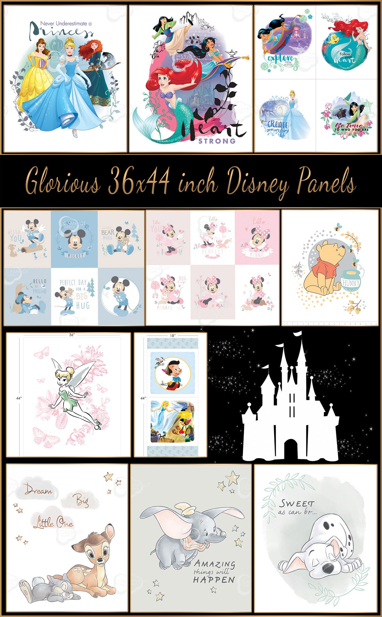 Disney Princess Power Heart Strong Collection Disney Fabric featheryournestquiltstore.com