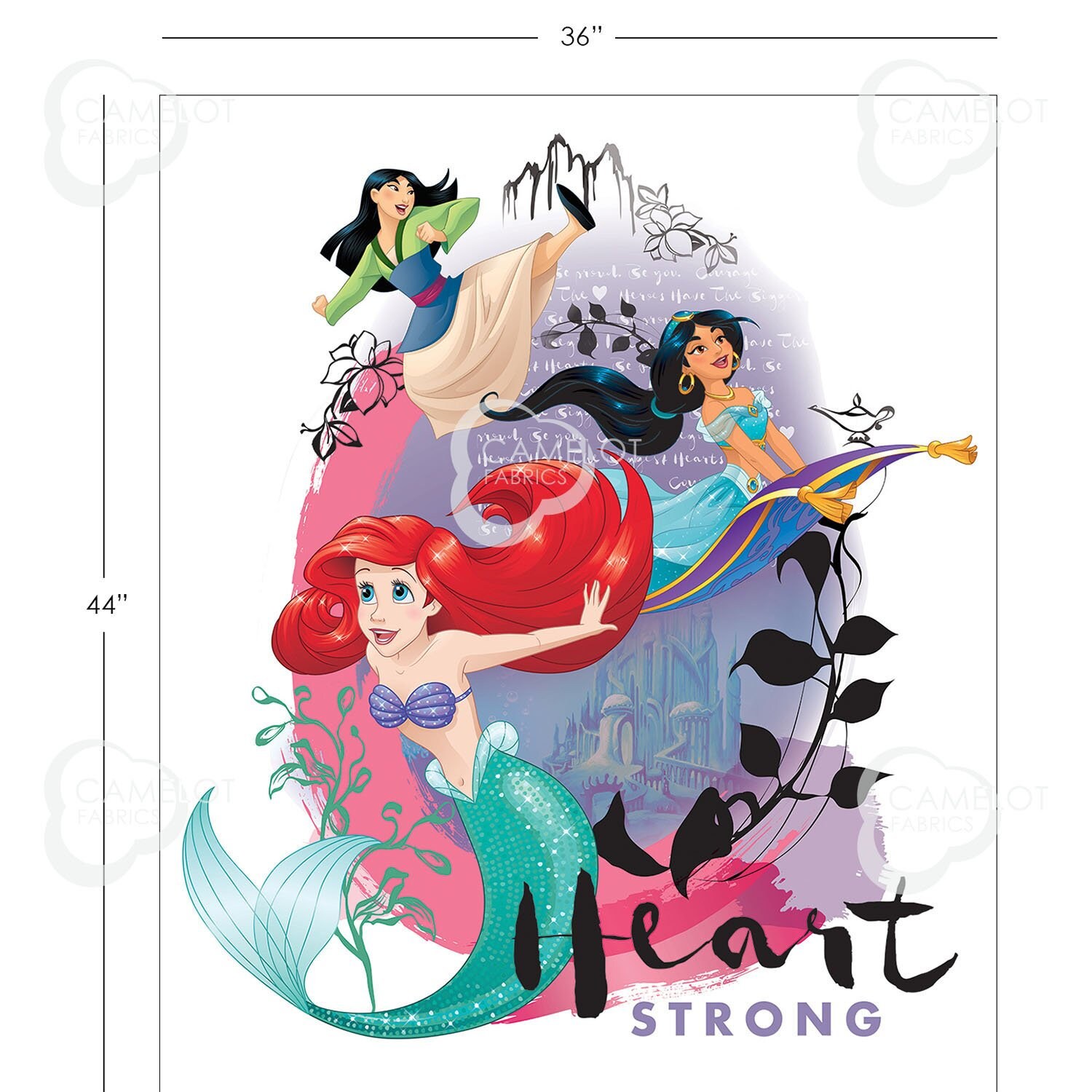Disney Princess Heart Strong Cinderella Ariel Jasmine Mulan jrsfabrics.com