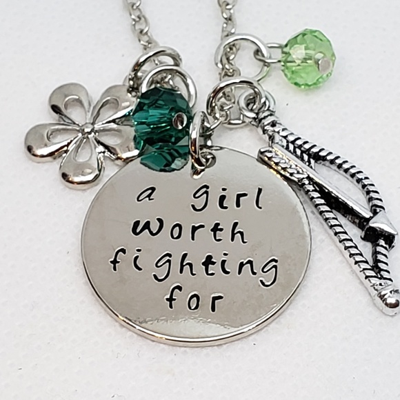 Amazon Com Cadoline Silver Tone A Girl Worth Fighting For Engraved Pendant Necklace 2 5cm Diamater With 18 Inch Chain Mulan Jewelry