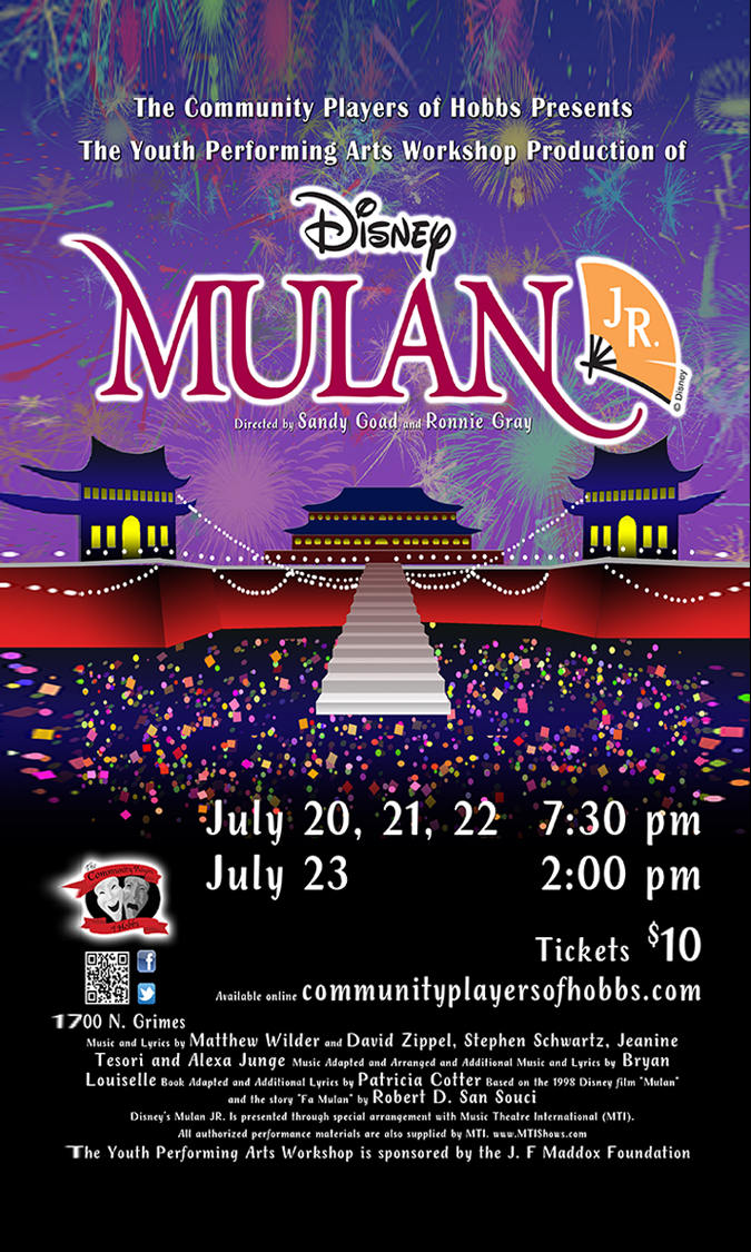She cleverly impersonates a man and goes off to train with fellow recruits. Is a one act stage musical based on the 1998 disney animated film mulan which in turn was based on the chinese legend of hua mulan and the story fa mulan by robert d. San souci 2 15 shout outs to cast and crew cast crew and creative staffthank you so much for the incredible experience with the finley middle school drama club 20172018.