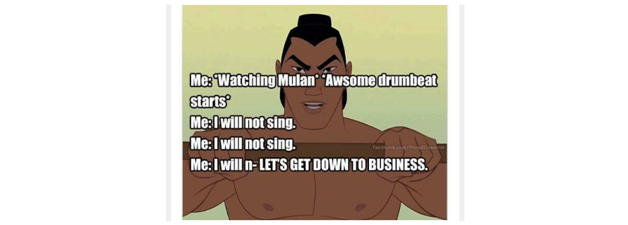 Watching Mulan Awsome Drumbe Artsp Will Not Sing Will Not Sing Facebookeomproud I Will N Lets Getdown To Business I Will Not Sing Mulan Disney Disney Meme On Me Me