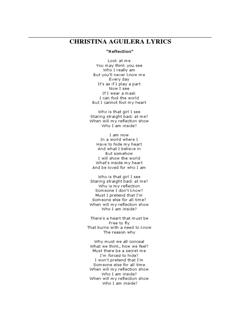 Reflection Pop Version From Mulan Sheet Music Christina Aguilera
