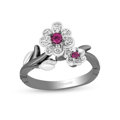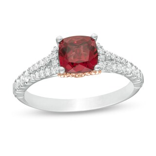 Enchanted Disney Mulan 6 0mm Cushion Cut Rhodolite And 1 4 Ct T W Diamond Engagement Ring In 14k Two Tone Gold Engagement Rings Wedding Zales Outlet