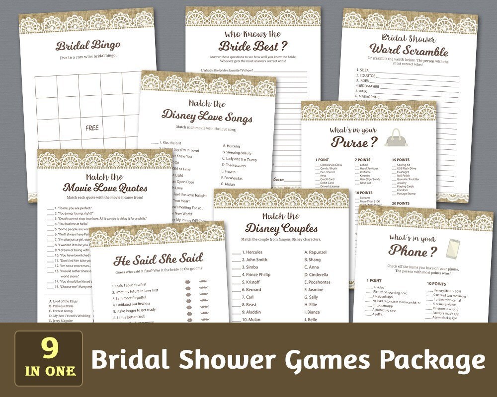 Burlap Lace Shower Games Package Rustic Vintage Bridal Shower Etsy www.etsy.com