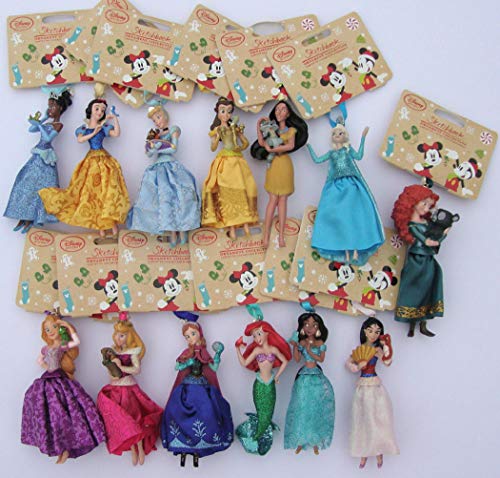 2013 Disney Princess Christmas Sketchbook Ornament Set Of 8 New