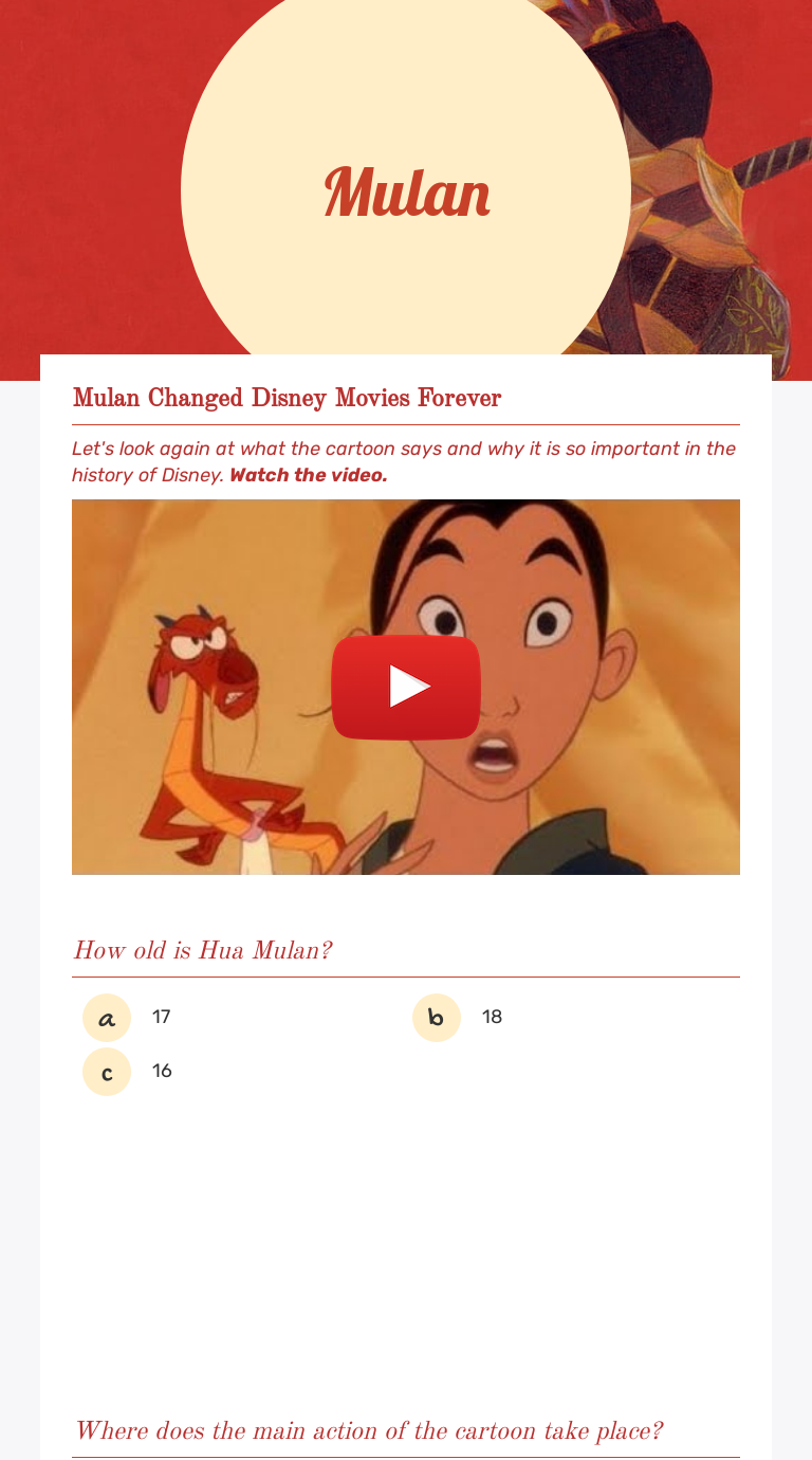 Mulan Lesson Plans Worksheets Reviewed By Teachers
