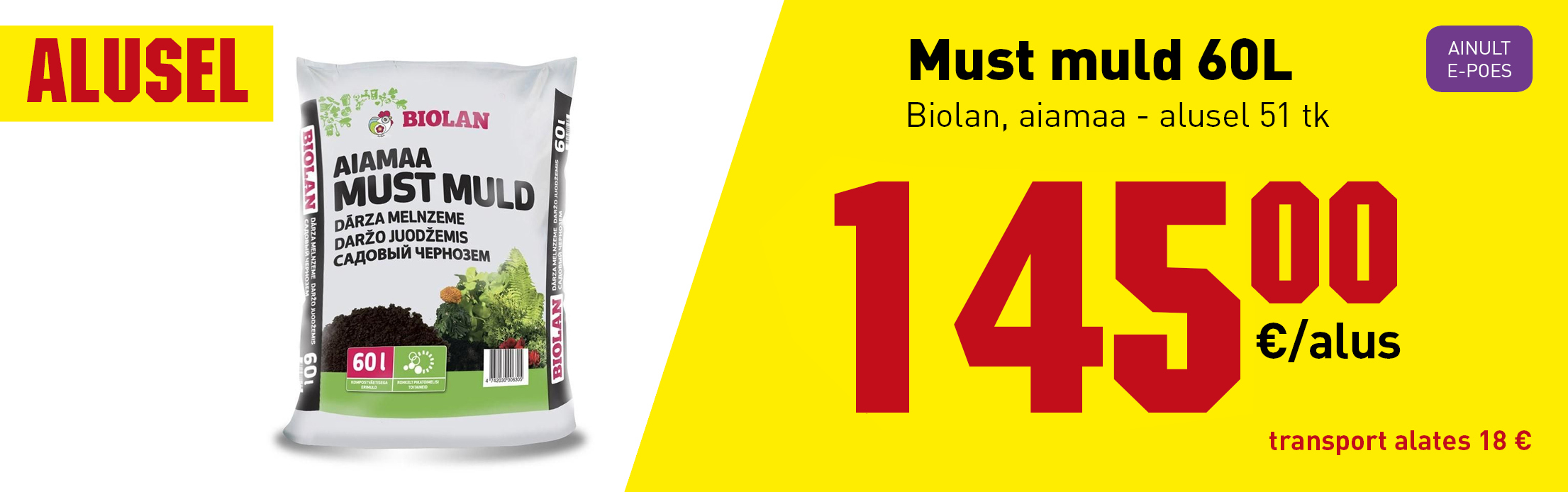 149 105 osta kohe. Biolani aiamaa must muld on vaeetatud mullasegu harrastusaednikele. Aiamaa must muld muudab pinnase rikkalikuks.