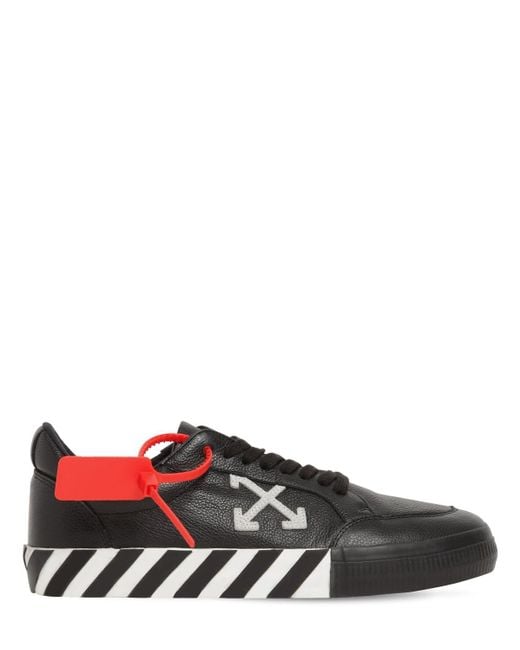 Off White Vulcanized Leather And Canvas Low Top Trainers In White