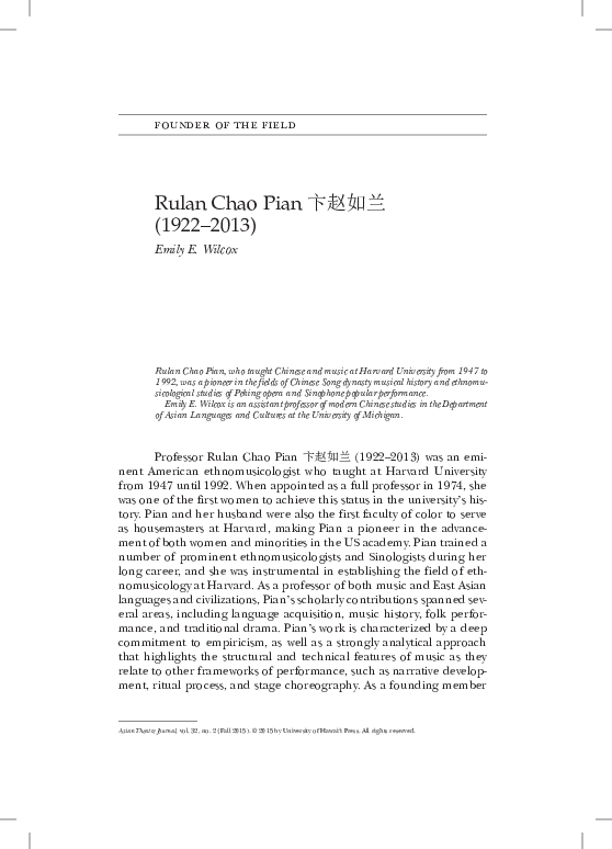 An Exhibition In Memory Of Professor Rulan Chao Pian Chinese University Of Hong Kong Library