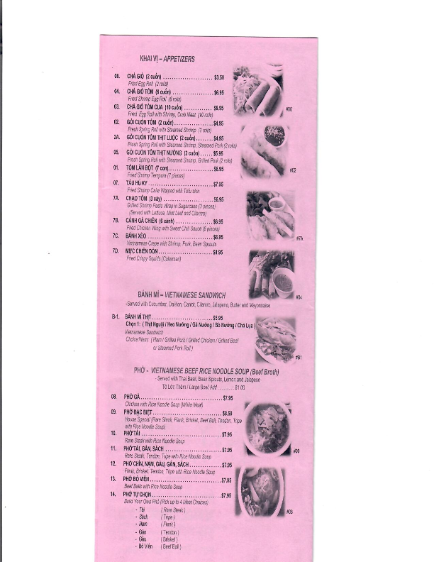 Online Menu Of My Tho Vietnamese Restaurant Restaurant Newark www.zmenu.com