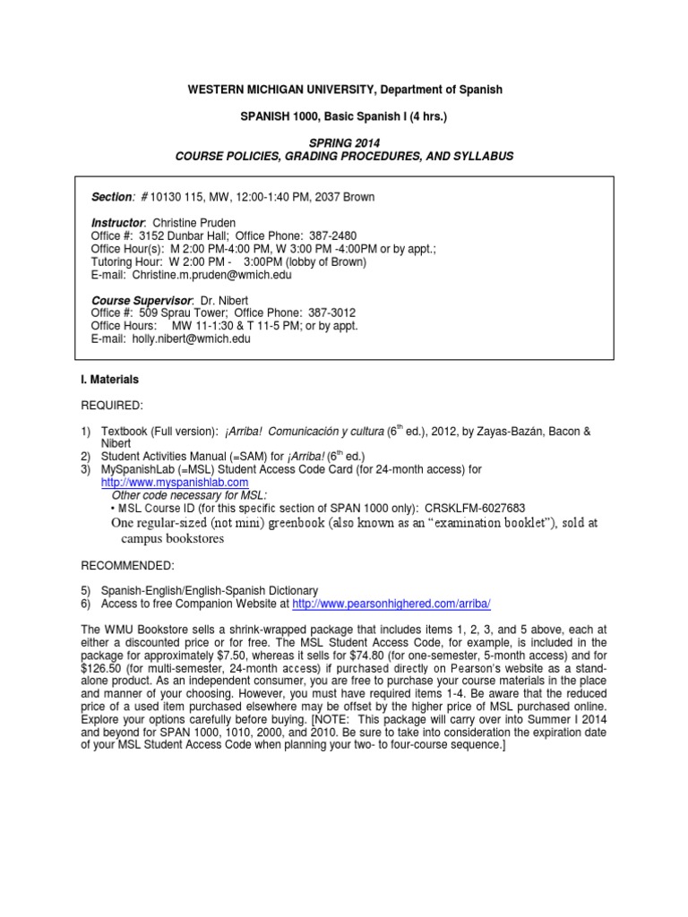 Spanish I Syllabus 2014 Wmu Academic Dishonesty Test www.scribd.com