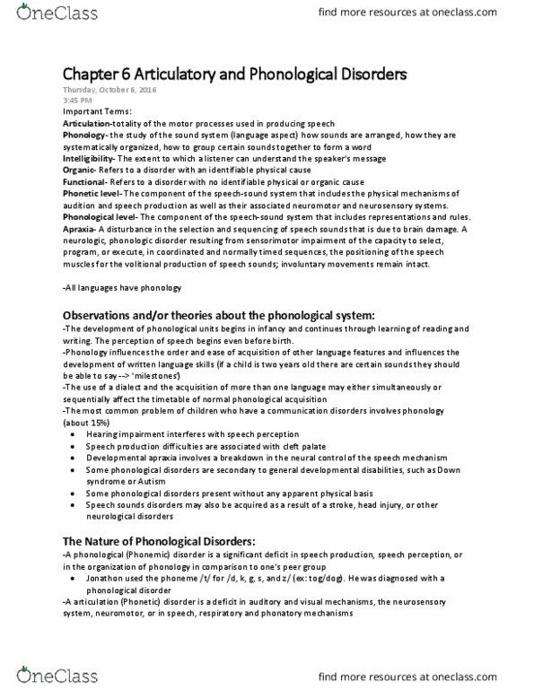 All Educational Materials For Speech Pathology And Audiology At oneclass.com