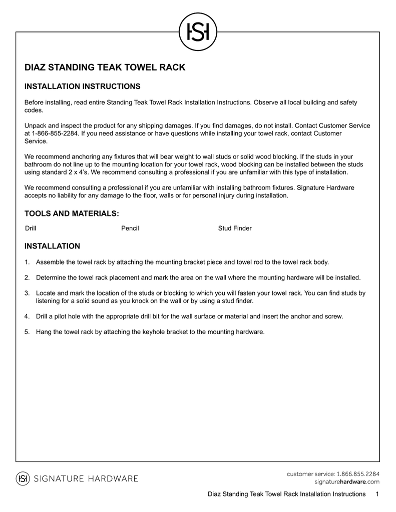 Signature Hardware 35 Antioch Freestanding Teak Towel Rack For